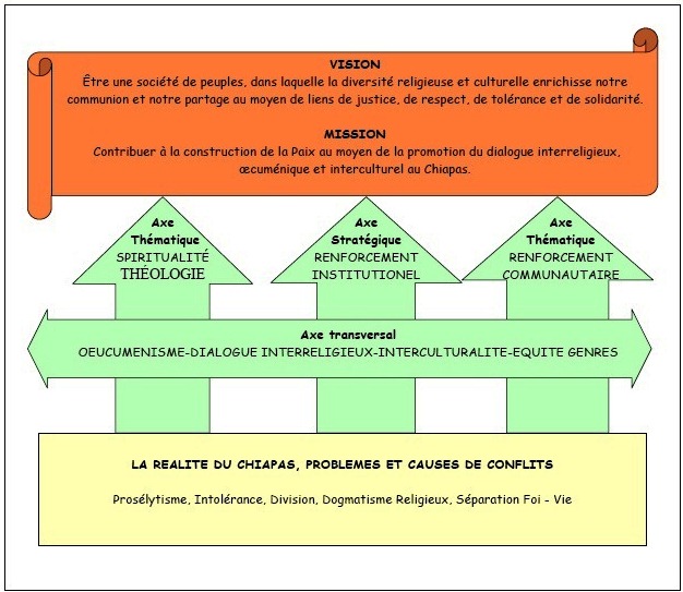 L’INESIN s’est impliquée dès sa création dans le contexte sociétal du peuple chiapanèque, comme l’ont fait l’évêque Samuel Ruiz ou les pasteurs et pasteures de l’Eglise Unifie du Christ (UU.EE.). Après l’arrivée de nombreux migrants guatémaltèques dans les années 80’ et le soulèvement du mouvement zapatistes (1994), la préoccupation pastoral s’est davantage orienté, à travers une approche œcuménique, à la réconciliation des différentes communautés du peuple chiapanèque. Ainsi est né le projet de l’Ecole Biblique de Formation Intégré (1997). Cette institution s’est dédiée dès ses débuts à promouvoir le respect des différences, la tolérance et la fraternité entre les divers groupes religieux. De part ses projets, l’institut a essayé de mettre un terme aux hostilités dues aux motifs religieux. Des ateliers sur la santé, l’éducation et les cours bibliques ont permis d’apporter aux communautés une expérience positive de l’œcuménisme. Des gens d’affiliations religieuses multiples participèrent à ces cours, ce qui permit de diffuser dans les communautés une expérience positive de l’œcuménisme. En 2002, l’Ecole Biblique de Formation Intégrale se constitue légalement en une association civile sous le nom de l’Institut d’Etude et d’Investigation Interculturelle (INESIN, A.C.). Tout au long de son histoire, le projet de l’Ecole Biblique de Formation Intégrale, désormais appelé l’INESIN, a pu compter sur l’appui et la solidarité internationale, grâce à la présence de personnel salarié et bénévole de toutes nationalités et religions. Tous les membres ont un objectif commun : contribuer au processus de paix au Chiapas depuis une perspective interculturelle et interreligieuse. A ce jour, l’INESIN est présente dans 33 municipalités et le nombre de personne participant à ses activités chaque année approche désormais 4000 personnes. Ce qu’a appris L’INESIN dans le processus de pacification, c’est qu’il ne peut pas y avoir de paix sans justice et respect des différences. |